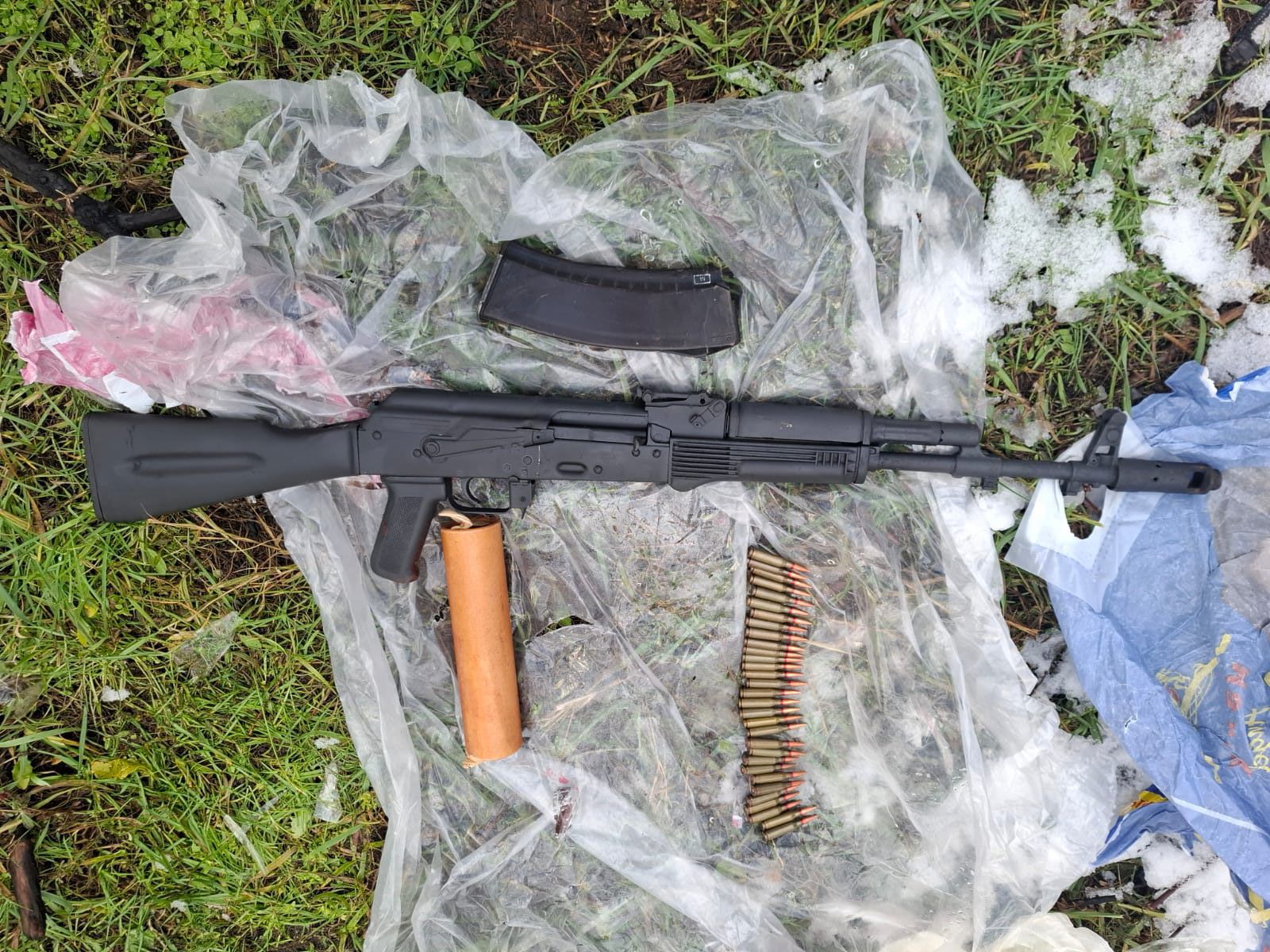Trend-in məlumatına görə, polis əməkdaşlarının hadisə yerinə baxışı zamanı 1 ədəd “AK-74” markalı avtomat silah və 30 ədəd patron, eləcə də 1 ədəd işıq-səs qumbarası aşkarlanaraq götürülüb.