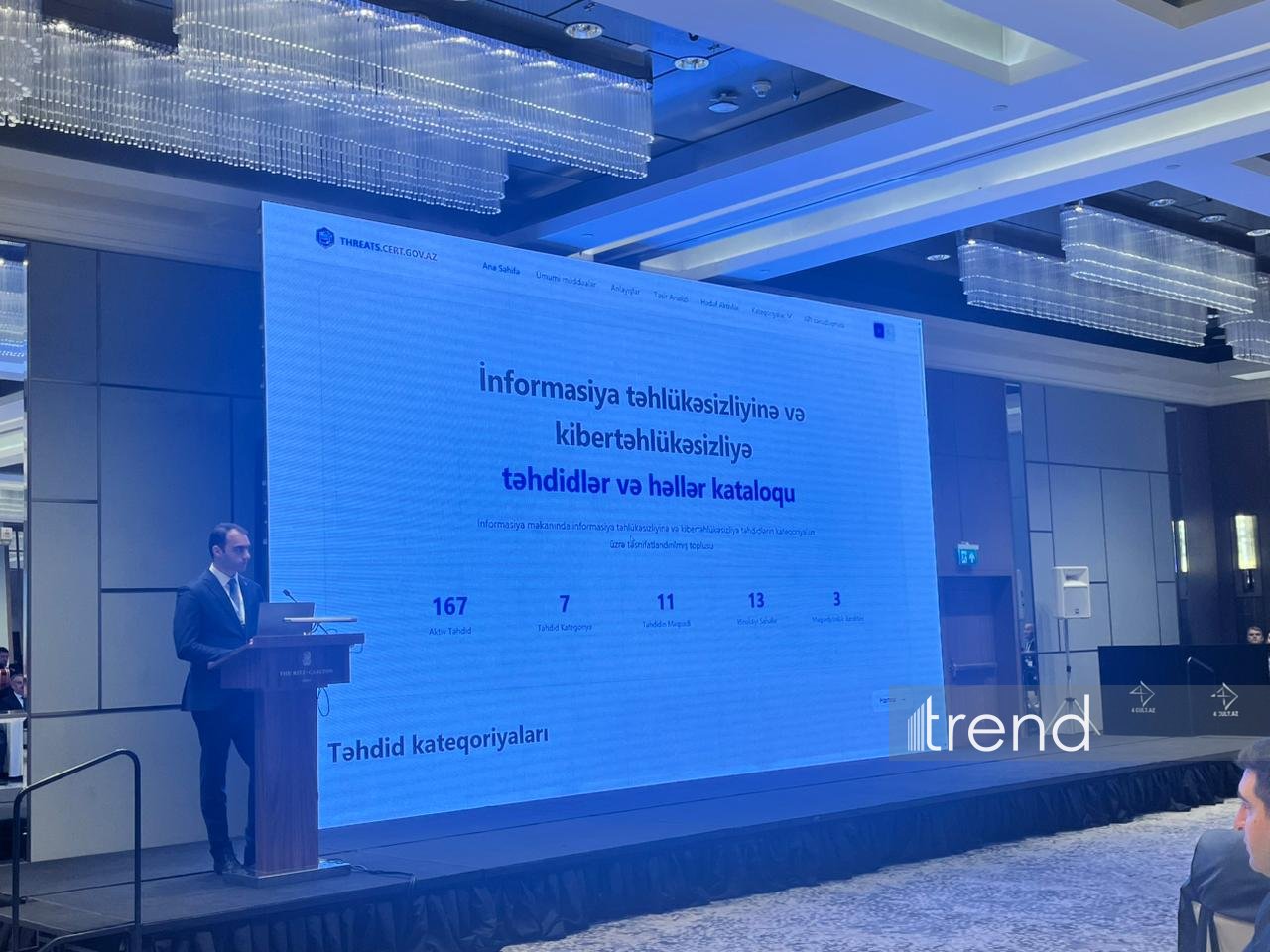 İdarə rəisi qeyd edib ki, portalın əsas səhifəsində təhdidlər 7 kateqoriya üzrə qruplaşdırılıb və hər bir kateqoriya daxilində müvafiq risklər sistemləşdirilib. Gələcəkdə yeni təhdidlər yarandıqca onlar da uyğun kateqoriyalar üzrə əlavə ediləcək:
