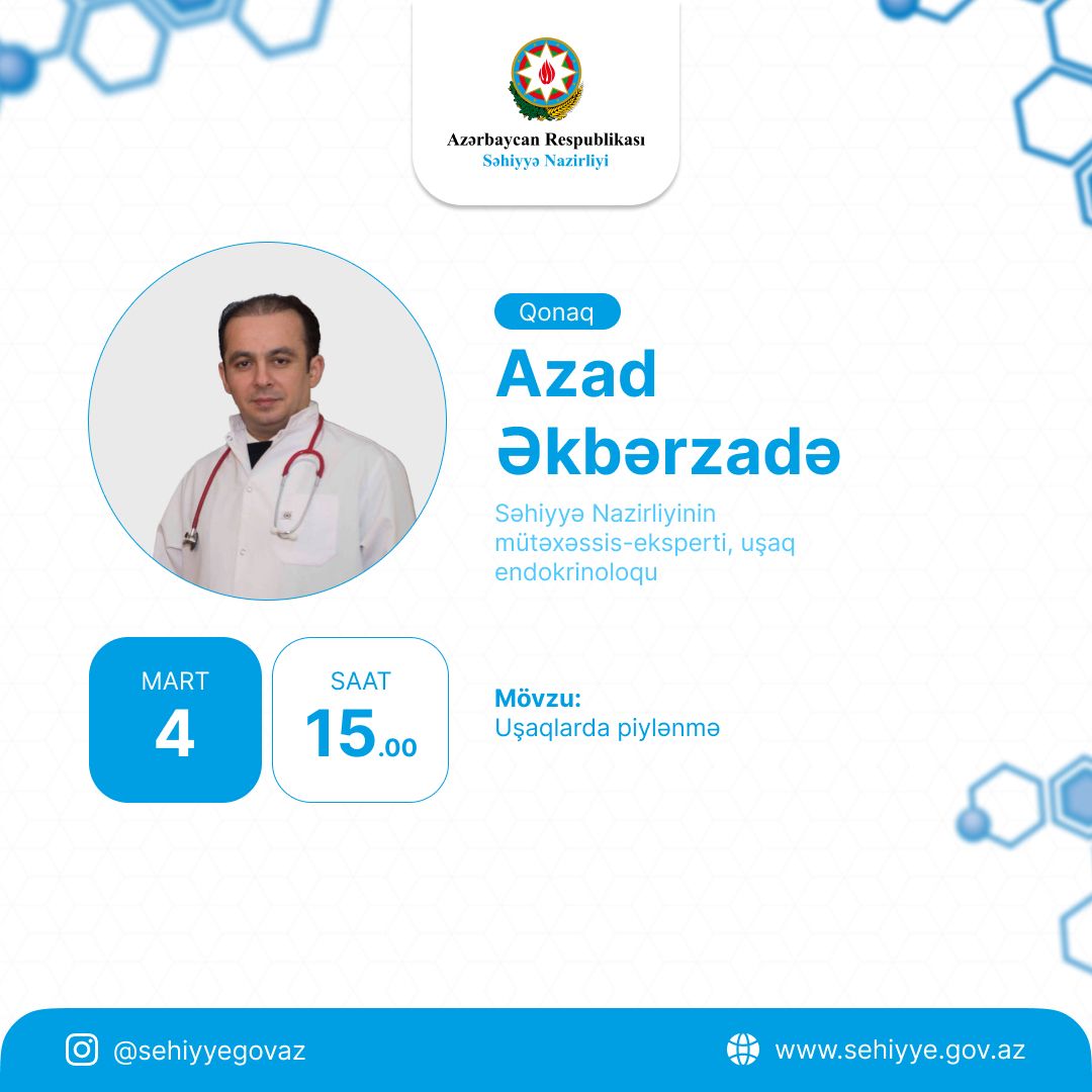 Trend xəbər verir ki, bu fikirləri Səhiyyə Nazirliyinin rəsmi “Instagram” hesabında keçirilən canlı yayım zamanı Səhiyyə Nazirliyinin mütəxəssis-eksperti, uşaq endokrinoloqu Azad Əkbərzadə açıqlayıb.
