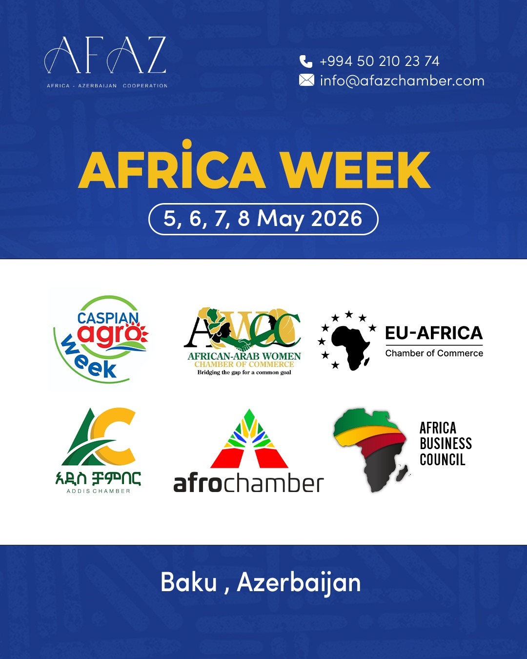 Azərbaycanda ilk dəfə olaraq “Africa Week” (Afrika Həftəsi) layihəsi reallaşdırılacaq. Bu təşəbbüs Azərbaycan ilə Afrika ölkələri arasında iqtisadi, ticarət, investisiya, səhiyyə və təhsil sahələrində əməkdaşlığın inkişafına yönəlib və iki region arasında əlaqələrin genişlənməsi üçün yeni imkanlar yaradacaq.