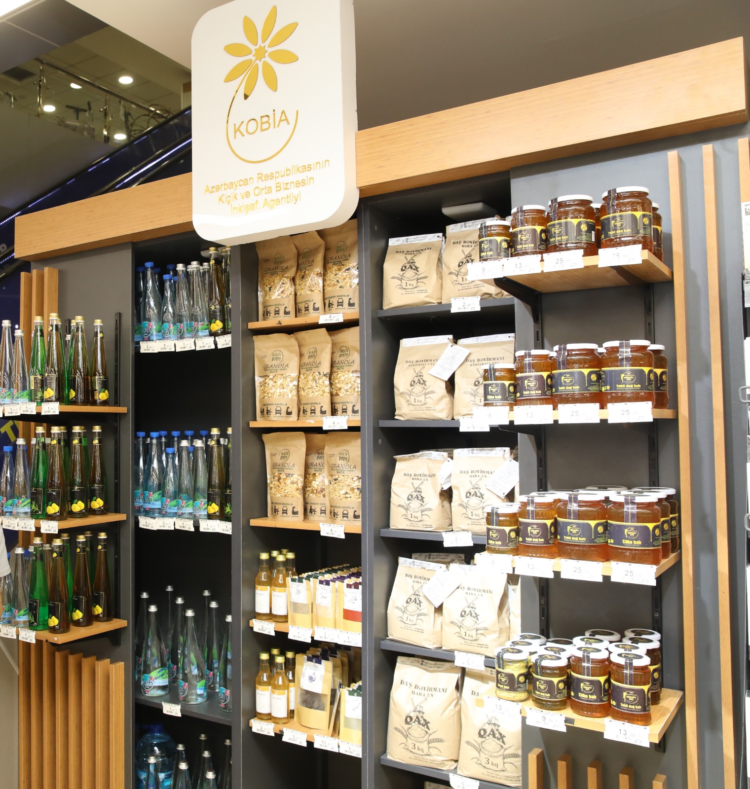 Mikro və kiçik sahibkarların ticarət şəbəkələrinə çıxışında qarşılaşdıqları çətinlikləri nəzərə alaraq KOBİA bu istiqamətdə xüsusi dəstək mexanizmi təqdim edir. Müvafiq qaydalara əsasən Agentlik iri ticarət şəbəkələrinin mağazalarında icarəyə yer götürərək vahid stendlər yaradır və sahibkarların məhsullarını bu satış nöqtələrində yerləşdirir. Məqsəd yerli istehsal məhsullarının tanıdılması və satış imkanlarının artırılmasıdır.