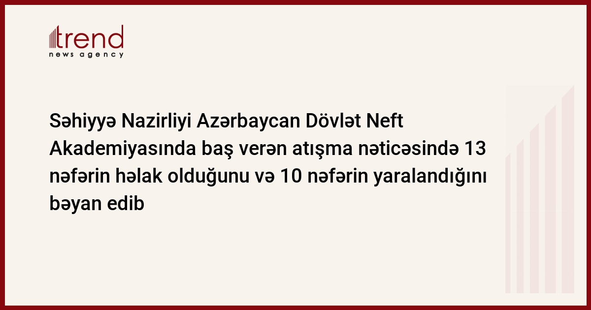 Azərbaycan Səhiyyə Nazirliyi cümə axşamı səhər Azərbaycan Dövlət Neft Akademiyasında baş verən atışma nəticəsində 13 nəfərin öldüyünü, 10 nəfərin isə yaralandığını açıqlayıb.