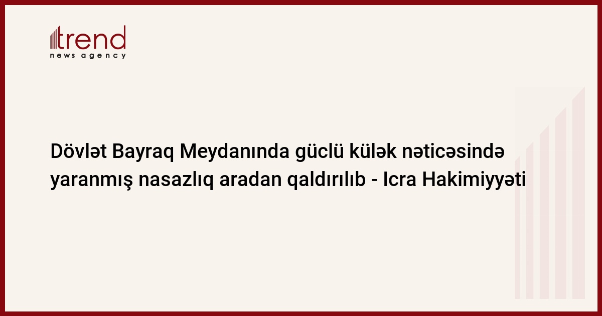 Fevralın 2-də Bakı vaxtilə gecə saat 03:00 radələrində Dövlət Bayraq Meydanında güclü küləyin əsməsi nəticəsində texniki xidmətlər tərəfindən bayraq dirəyində titrəmə halları müəyyən edilib.