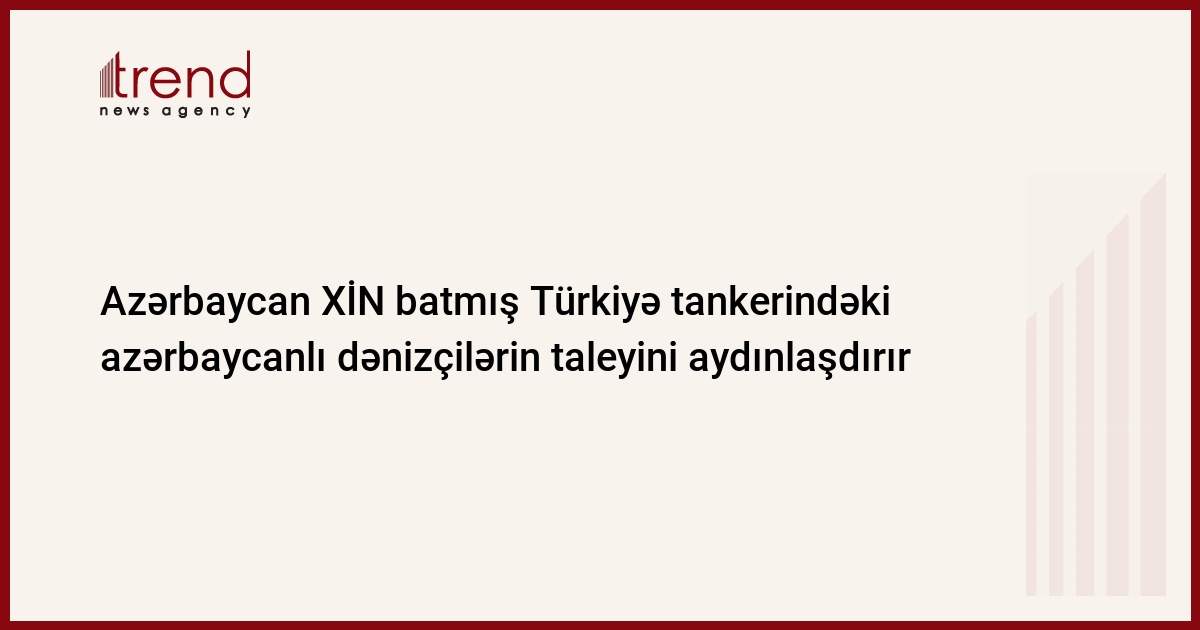 Azərbaycan XİN Albaniyanın Durres limanı yaxınlığında batan Türkiyə tankerindəki həlak olan və yaralanan azərbaycanlı dənizçilərin taleyini araşdırır. Bu barədə bazar ertəsi Trend-ə XİN-in mətbuat katibi Elman Abdulalyev bildirib.