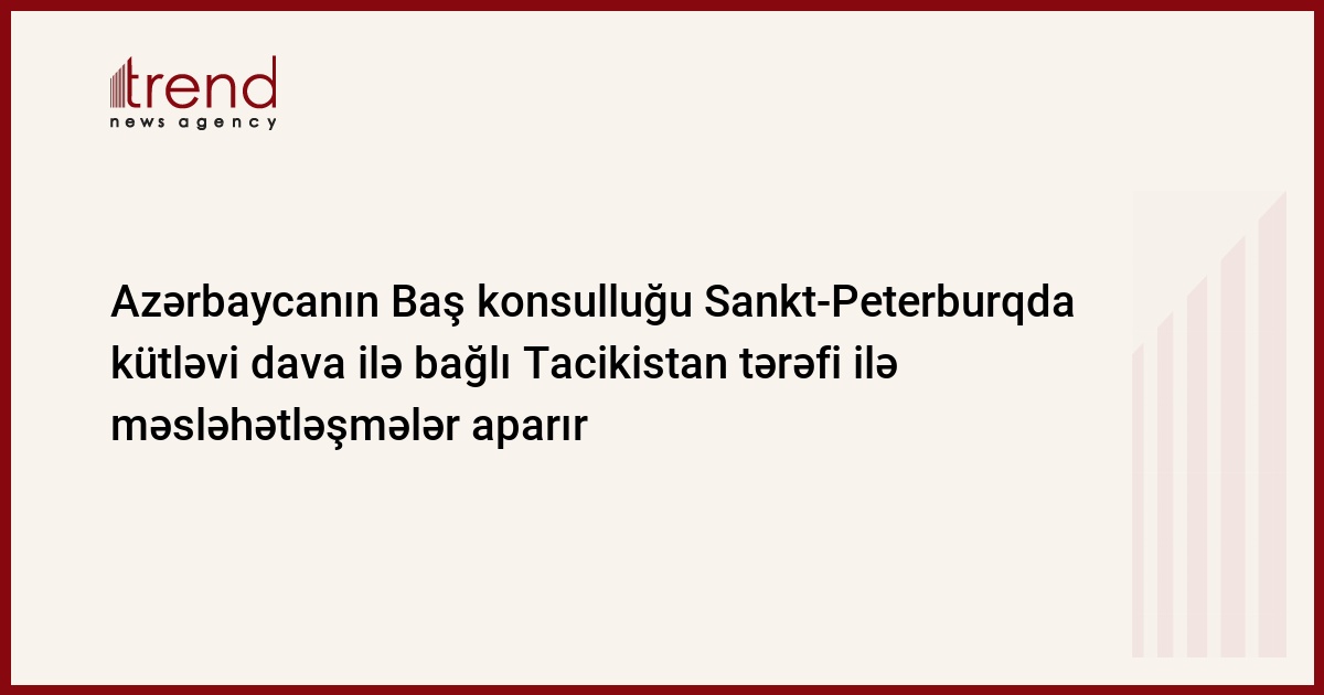 Azərbaycanın Sankt-Peterburqdakı Baş konsulluğu Sankt-Peterburqda şəhərin tacik diasporunun fəalları və Tacikistanın fəxri konsulluğu ilə, həmçinin iki ölkənin vətəndaşları arasında baş vermiş kütləvi davada zərər çəkənlərin yaxınları və doğmaları ilə hadisənin inkişafının qarşısının alınması üçün daimi məsləhətləşmələr aparır. Trend-in məlumatına görə, bu barədə cümə günü konsulluğun məlumatında deyilir.