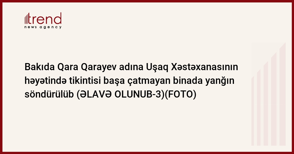 Nəsimi Rayon Polis İdarəsindən Trend-ə verilən məlumata görə, yanğın Qara Qarayev adına Uşaq Xəstəxanasının həyətində tikintisi başa çatmayan binada başlayıb.