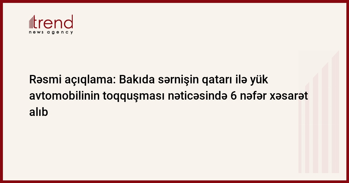 Ötən gecə Bakıda yük avtomobilinin sərnişin qatarı ilə toqquşması nəticəsində 6 nəfər xəsarət alıb.