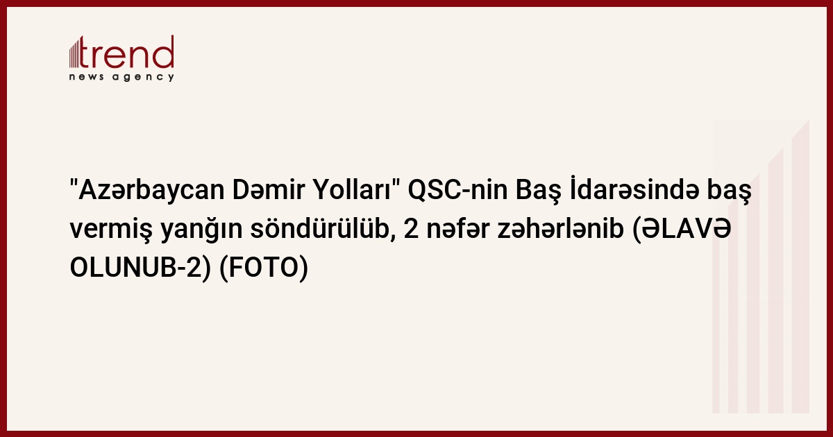 Bakıda Nəsimi rayonunda yerləşən "Azərbaycan Dəmir Yolları" QSC-nin Baş İdarəsində baş vermiş yanğın söndürülüb.