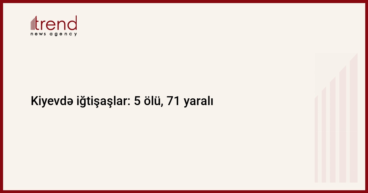 Bu gün Ukraynanın paytaxtı Kiyevin mərkəzindəki qarşıdurmalar nəticəsində 5 nəfər ölüb, 71 nəfər xəsarət alıb. Trend-in məlumatına görə, bu barədə Kiyev şəhər administrasiyasının rəsmi saytı yazır.