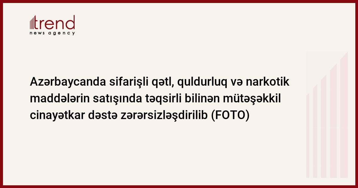 Azərbaycanda sifarişli qətl, quldurluq, oğurluq və narkotik maddələrin satışında təqsirli bilinən 11 nəfərdən ibarət mütəşəkkil cinayətkar dəstənin üzvləri yaxalanıb.