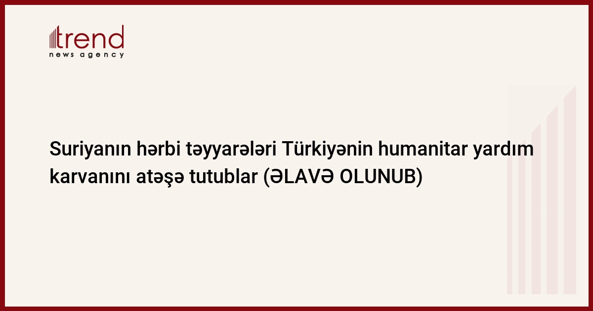 Suriya Hərbi Hava Qüvvələri (HHQ) Türkiyənin humanitar yardım karvanını atəşə tutublar. Trend-in məlumatına görə, bu barədə cümə günü "Milliyet" qəzeti xəbər yayıb.