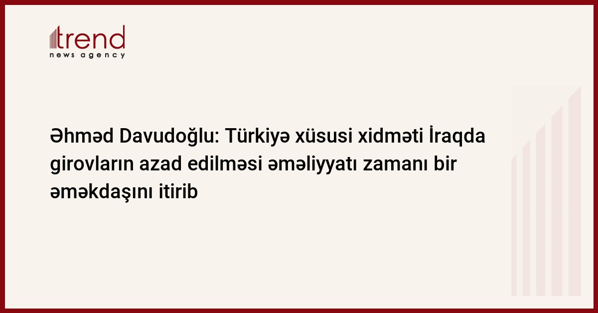 Türkiyə xüsusi xidməti İraqda girovların azad edilməsi əməliyyatı zamanı bir əməkdaşını itirib. Bunu Türkiyənin Baş naziri Əhməd Davudoğlu bəyan edib. Bu barədə Trend çərşənbə axşamı Türkiyənin "Hüriyyət" qəzetinə istinadən xəbər yayıb.