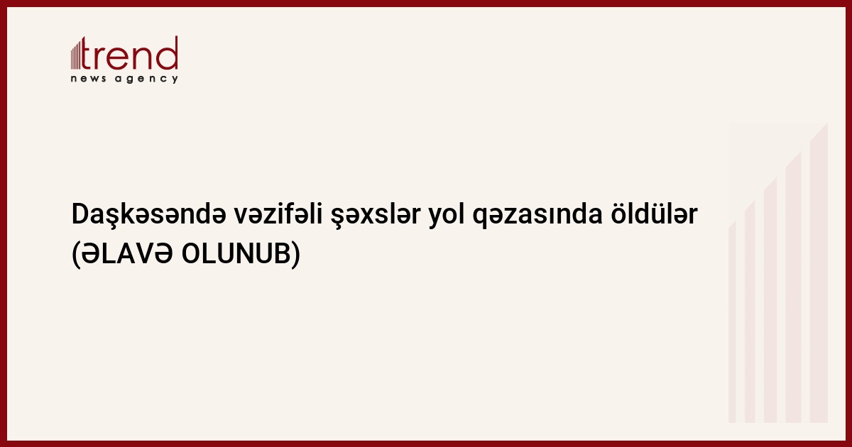 Trend Kəpəz TV-yə (Region TV) istinadən məlumat verir ki, hadisə zamanı Dövlət Sosial Müdafiə Fondunun Daşkəsən rayon şöbəsinin müdiri Elvin Haqverdiyev və rayon Mədəniyyət və Turizm şöbəsinin müdiri Hacı Məmmədov dünyasını dəyişib.