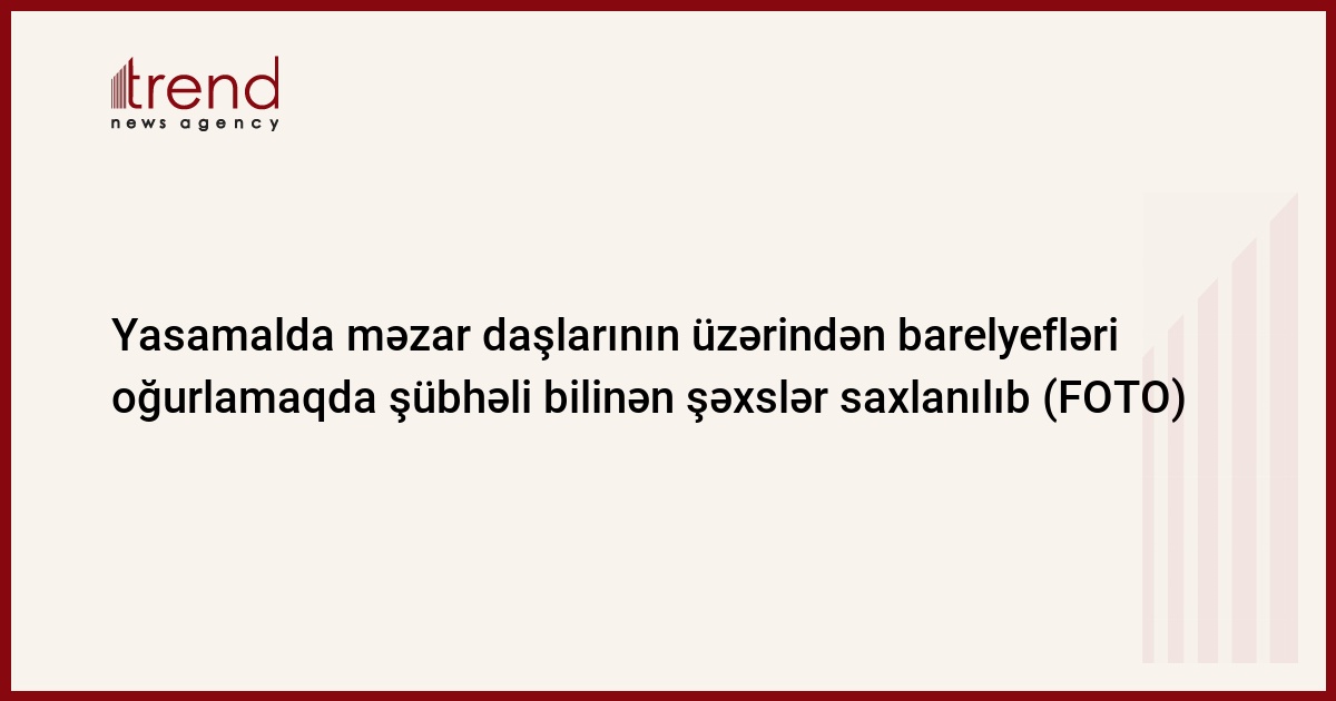 Daxili işlər orqanlarının əməkdaşları tərəfindən keçirilən növbəti əməliyyat nəticəsində Yasamal rayonunda yerləşən qəbiristanlıqda məzar daşlarının üzərində olan bürünc və latundan hazırlanan barelyefləri oğurlamaqda şübhəli bilinən şəxslər saxlanılıb.