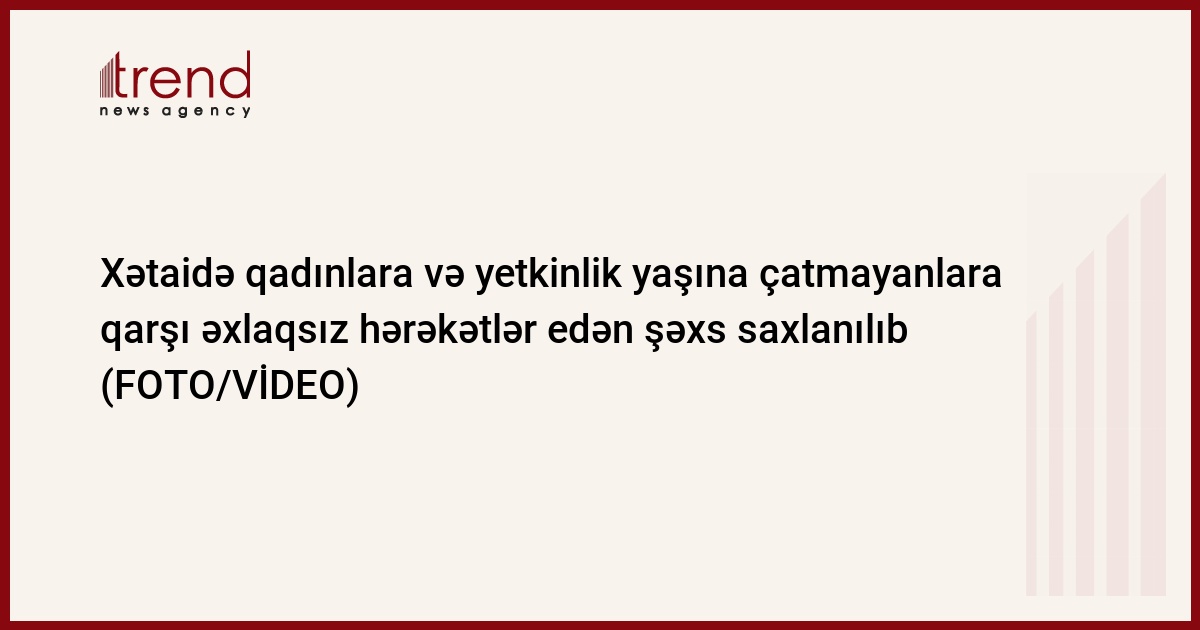 Xətai Rayon Polis İdarəsinin əməkdaşlarının həyata keçirdikləri əməliyyat-axtarış tədbiri nəticəsində rayon ərazisində yetkinlik yaşına çatmayan bir qıza qarşı əxlaqsız hərəkətlər etməkdə şübhəli bilinən paytaxt sakini Rauf Süleymanov saxlanılıb.
