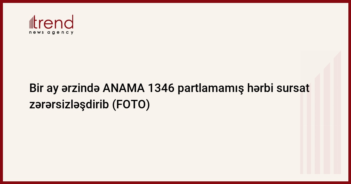 Ərazilərin Minalardan Təmizlənməsi üzrə Milli Agentlik (ANAMA) sentyabr ayı ərzində ərazilərin mina və partlamamış hərbi sursat (PHS) təmizlənməsi əməliyyatları barədə məlumat yayıb.