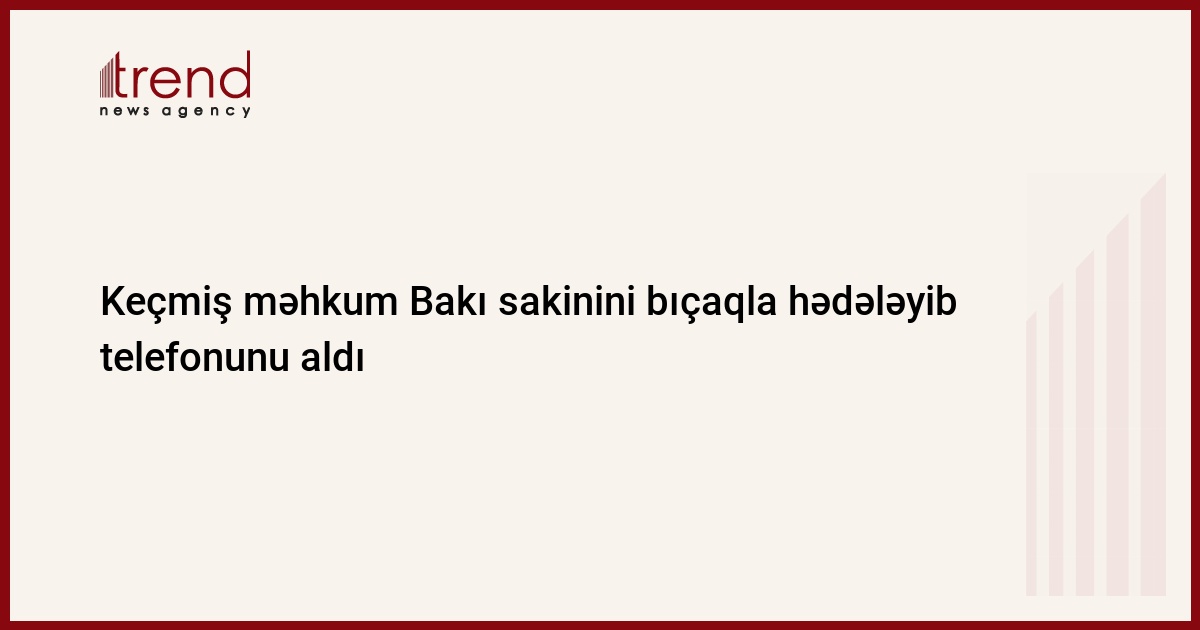 Daxili İşlər Nazirliyinin Mətbuat xidmətindən Trend-ə verilən məlumata görə, Nizami RPİ-nin 25-ci Polis Şöbəsinə müraciət edən Bakı şəhər sakini Z.Novruzov 2019-cu il oktyabrın 9-da A.Manafov küçəsində 2 nəfərin onu bıçaqla hədələyib mobil telefonunu aldığını bildirib.