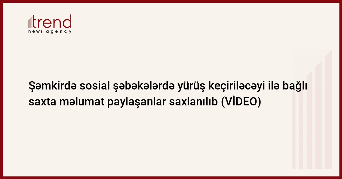Daxili İşlər Nazirliyinin Mətbuat Xidmətinin Gəncə regional qrupundan Trend-ə verilən məlumata görə, iyul ayının 12-dən etibarən düşmənlə təmas xəttində gərgin vəziyyətin hökm sürdüyü vaxtda sosial şəbəkələrdə Şəmkir rayon ərazisində yürüş keçiriləciyi ilə bağlı insanlar arasında çaşqınlıq yarada biləcək əsassız, həqiqətə uyğun olmayan yalan məlumatlar paylaşılıb.