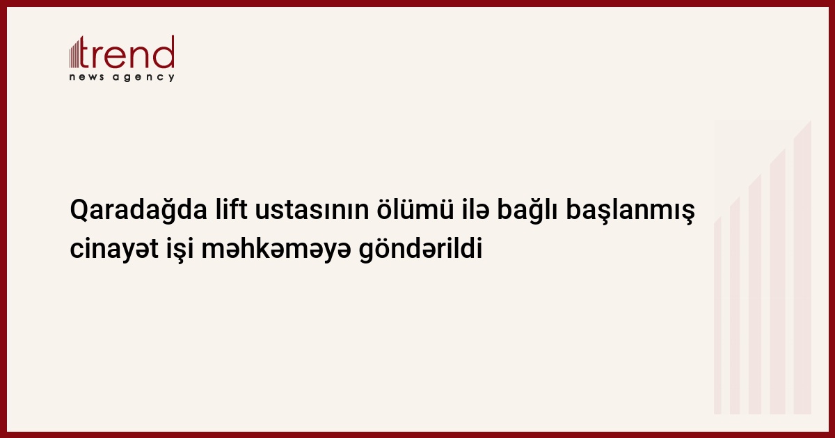 Mayın 19-da Qaradağ rayonu, Lökbatan qəsəbəsində yerləşən “ŞA İnşaatçı” MTK tərəfindən inşa edilən çoxmərtəbəli yaşayış binasının 7-ci mərtəbəsində lift şaxtasında lift quraşdırma işlərini görən Abbas Sultanovun lift çalovuna yıxılaraq xəsarət alması və aldığı xəsarətdən ölməsi faktına görə Qaradağ rayon prokurorluğunda Cinayət Məcəlləsinin 162.2-ci (əmək mühafizəsi qaydalarını pozma ehtiyatsızlıqdan insan ölümünə səbəb olduqda) maddəsi ilə cinayət işi başlanaraq istintaq aparılıb.
