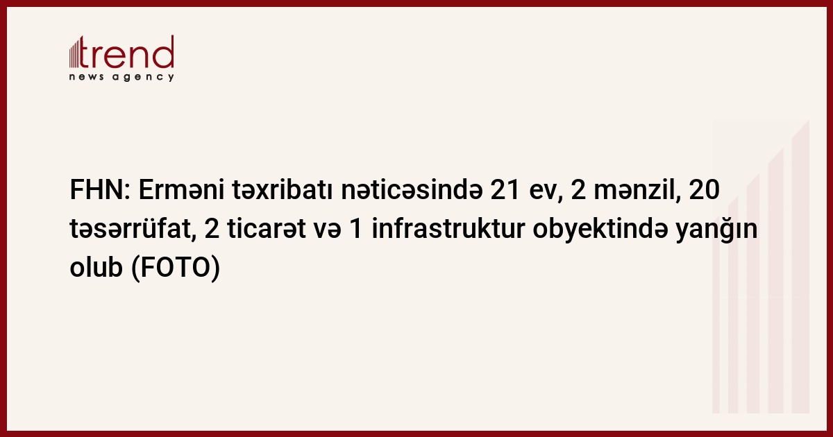 Fövqəladə Hallar Nazirliyindən Trend-ə bildirilib ki, ümumilikdə, qeyd edilən dövrdə 21 fərdi yaşayış evi, 2 mənzil, 20 təsərrüfat, 2 ticarət və 1 infrastruktur obyektində, habelə, qəbiristanlıq, qamışlıq, açıq sahə və Ağgöl Milli Parkı kimi ərazilərdə baş vermiş 10 yanğın hadisəsinin qarşısının alınması məqsədilə Fövqəladə Hallar Nazirliyinin müvafiq qüvvələri səfərbər edilib. Qeyd edilməlidir ki, bir sıra hallarda yanğın baş vermiş ərazi düşmən tərəfindən intensiv atəş altında saxlanıldığından yanğınsöndürmə qüvvələrinin hadisələrə operativ müdaxiləsi mümkün olmayıb.