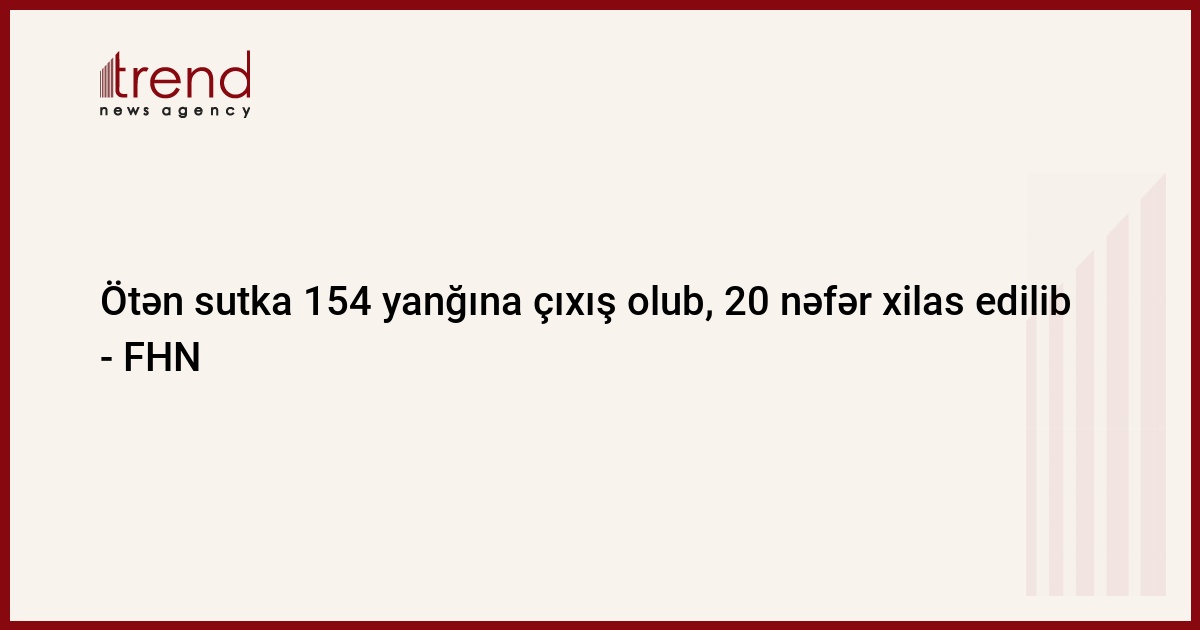 FHN-dən Trend-ə verilən xəbərə görə, “112” qaynar telefon xəttinə daxil olmuş zənglər əsasında Nazirliyin aidiyyəti qurumları tərəfindən ötən sutka ərzində 154 yanğına çıxış, 19 halda köməksiz vəziyyətdə qalma və 1 intihara cəhd faktı üzrə qəza-xilasetmə əməliyyatları həyata keçirilib. Görülmüş təcili və təxirəsalınmaz tədbirlər nəticəsində yanğınların operativ söndürülməsi, insanların həyatının xilas olunması təmin edilib.