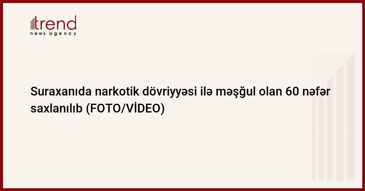Ümimilikdə isə Suraxanı rayonunun inzibati ərazisində ilin əvvəlindən keçirilən əməliyyatlar zamanı narkotiklərin qanunsuz dövriyyəsini təşkil edən 60 nəfər saxlanılıb. Onların hər biri barəsində İdarənin İstintaq Şöbəsində Cinayət işləri başlanılıb. Suraxanı rayonu ərazisində narkotiklərin qanunsuz dövriyyəsi ilə məşğul olan digər şəxslərin də tutulmaları istiqamətində polis əməkdaşları tərəfindən mübarizə tədbirləri davam etdirilir.