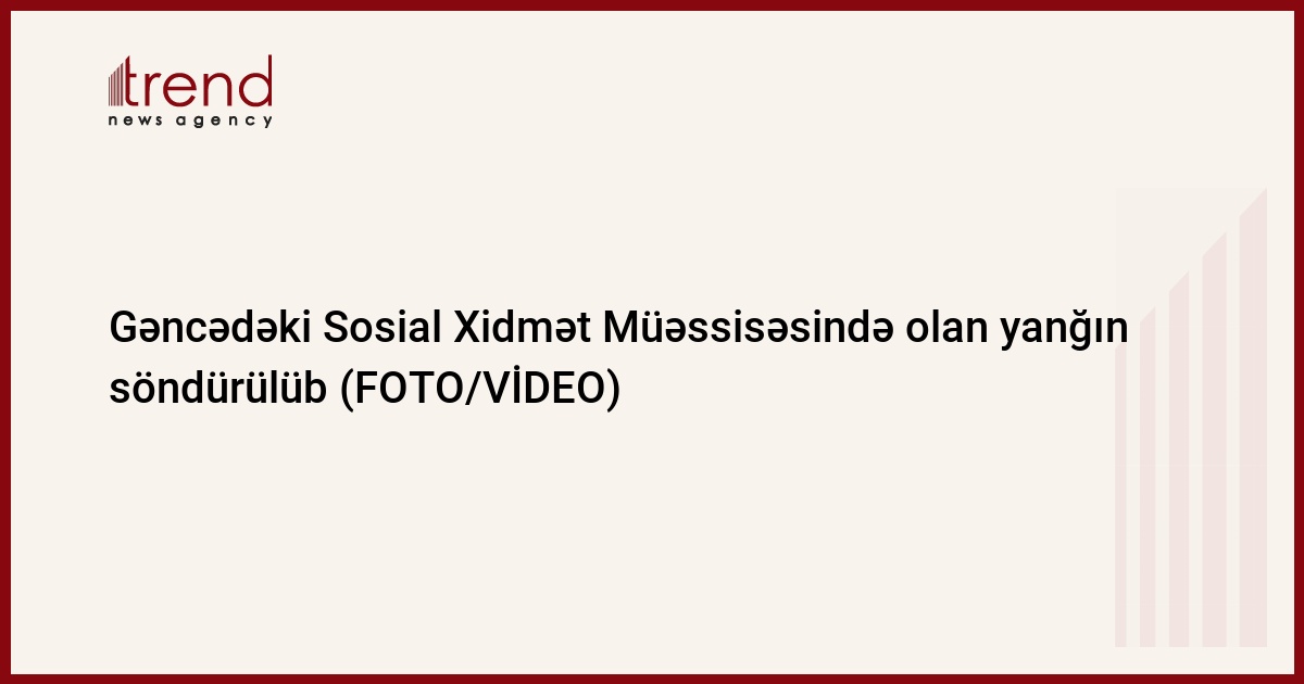 Fövqəladə Hallar Nazirliyinin "112" qaynar telefon xəttinə Gəncə şəhərinin Qurtuluş küçəsində yerləşən Sosial Xidmət Müəssisəsində yanğın baş verməsi barədə məlumat daxil olub və dərhal əraziyə FHN-in Dövlət Yanğından Mühafizə Xidmətinin qüvvələri cəlb edilib.