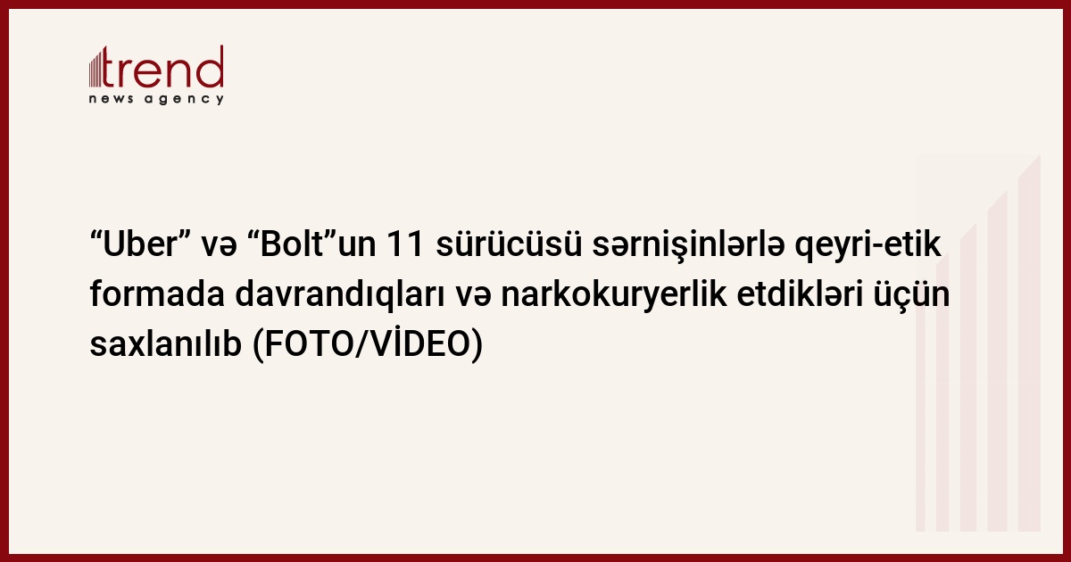 Paytaxt ərazisində “Uber” və “Bolt” taksi şirkətlərinin bəzi sürücülərinin əsasən xanım sərnişinlərlə qeyri-etik formada davranmaları, əxlaqsız təkliflər etmələri və taksi görüntüsü yaradaraq narkokuryerlik etmələri barədə daxil olan əməliyyat məlumatları əsasında polis əməkdaşları tərəfindən növbəti təxirəsalınmaz tədbirlər keçirilib.