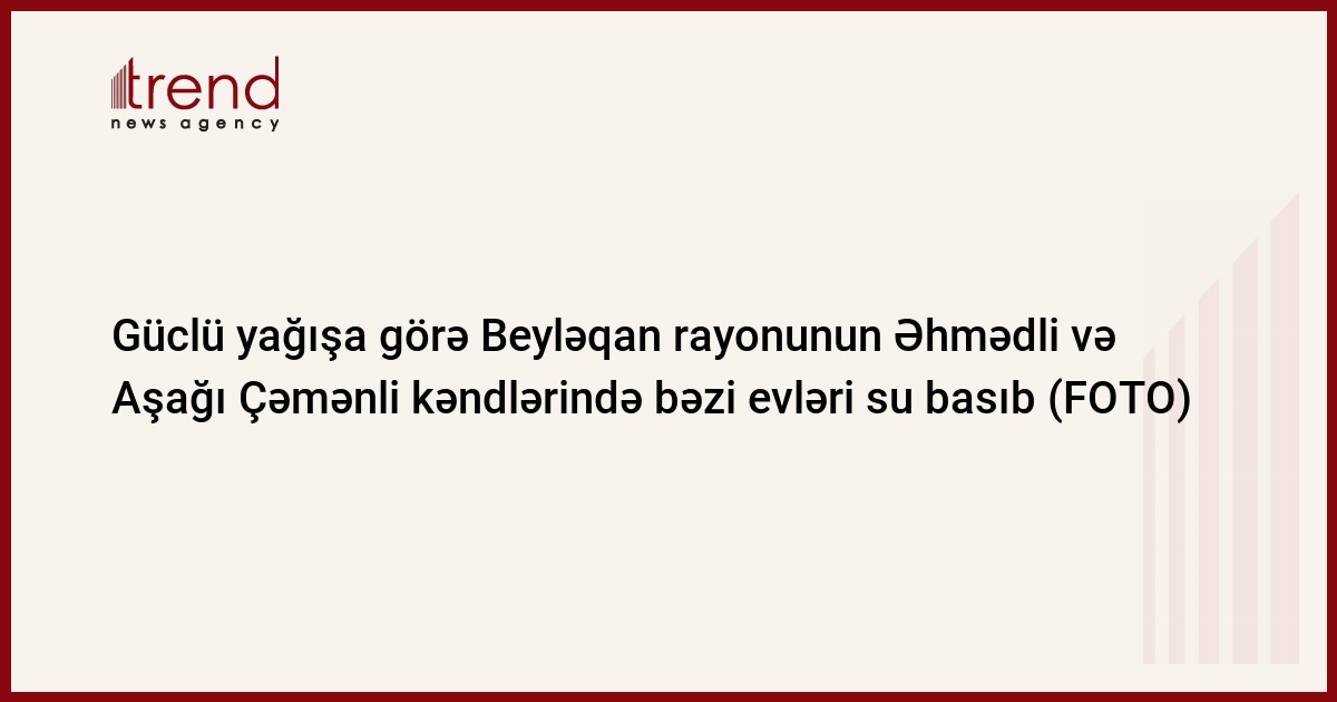 Fövqəladə Hallar Nazirliyinin (FHN) “112” qaynar telefon xəttinə yağan güclü yağış səbəbindən Beyləqan rayonunun Əhmədli və Aşağı Çəmənli kəndlərində bəzi fərdi yaşayış evləri və həyətyanı sahələrin subasmaya məruz qalması barədə məlumat daxil olub.