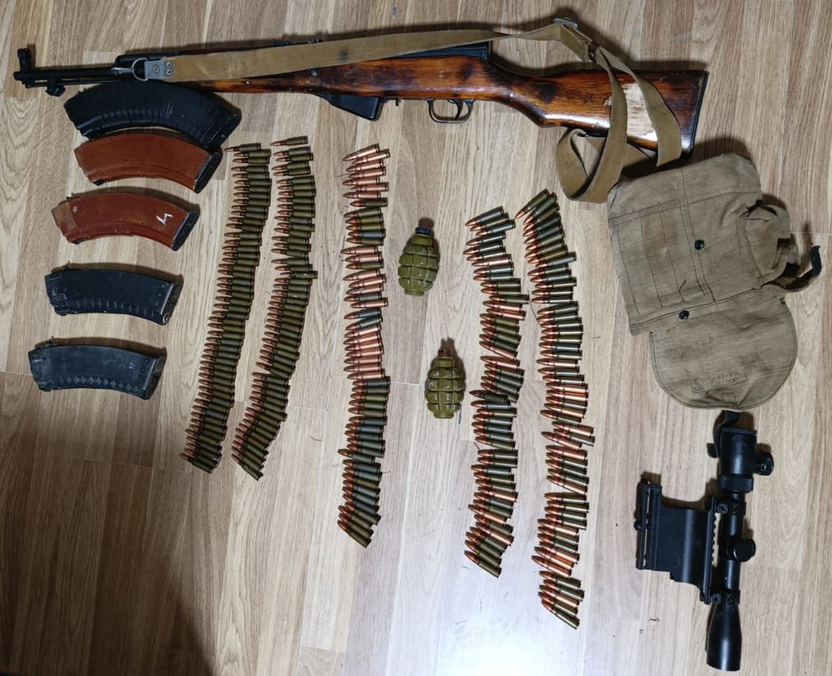 Qeyd edilən ünvandan 1 ədəd avtomat, 5 ədəd patron darağı, 2 ədəd əl qumbarası, optik cihaz və 248 ədəd patron götürülüb.