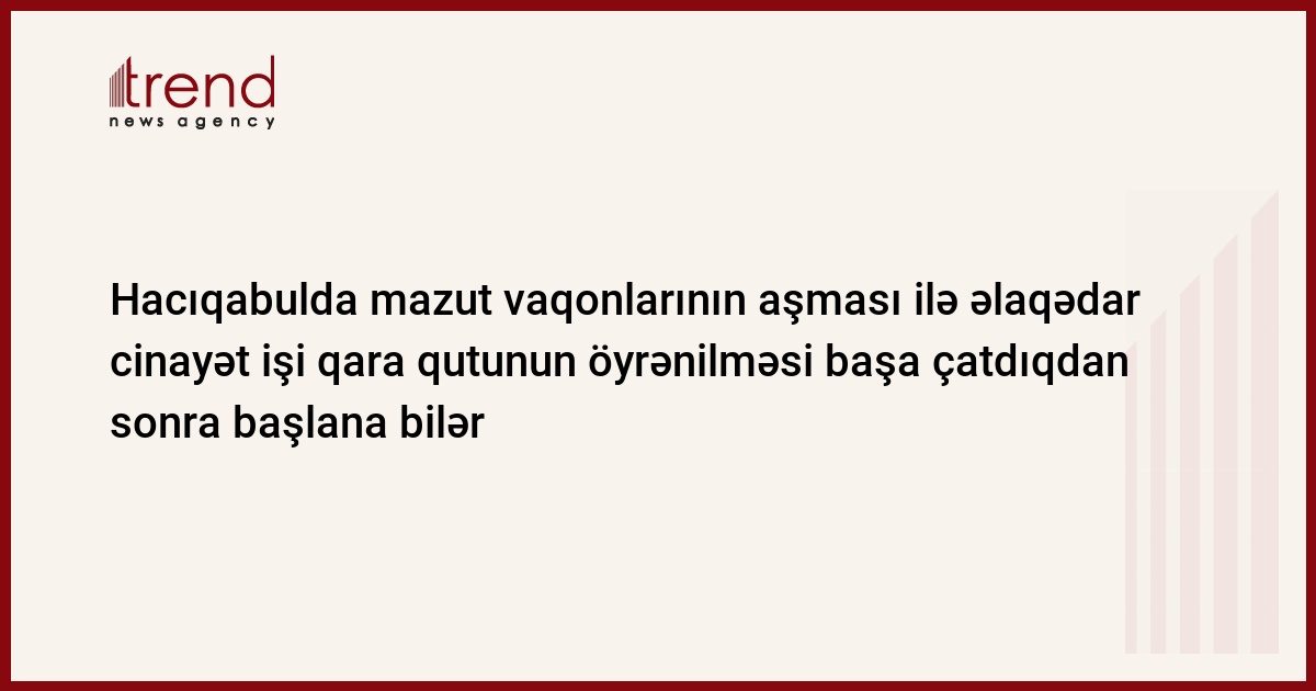 Mazut vaqonlarının aşması ilə əlaqədar cinayət işi qara qutunun öyrənilməsi başa çatdıqdan sonra başlana bilər. Bu barədə Trend ə Gəncə Şəhər Prokurorluğunun müstəntiqi Fazil Hüseynov məlumat verib.