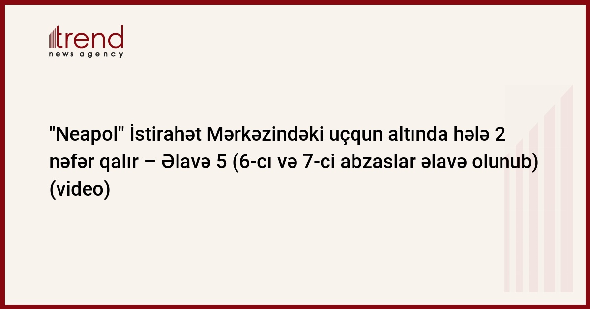 1962-ci il təvəllüdlü, Zəngilan rayonundan məcburi köçkün düşmüş, tikintidə briqadir işləyən Rafiq Məmmədov və Sumqayıtdan olan 43 yaşlı fəhlə Rauf Abdullayev isə hələ dağıntı altındadırlar.