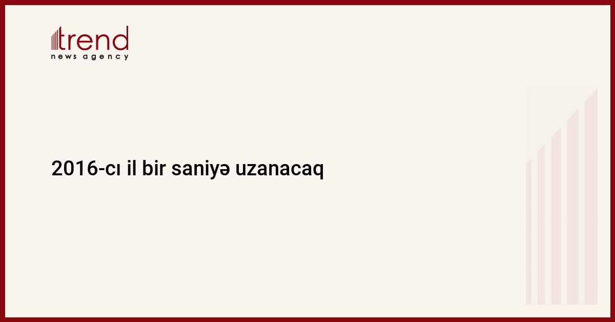 Beynəlxalq Yerin Fırlanması Xidmətinin (IERS) mütəxəssisləri 2016-cı il 31 dekabrın son dəqiqəsinə bir saniyə əlavə edəcək. Bu barədə Trend RİA Novosti agentliyinə istinadən məlumat verir.
