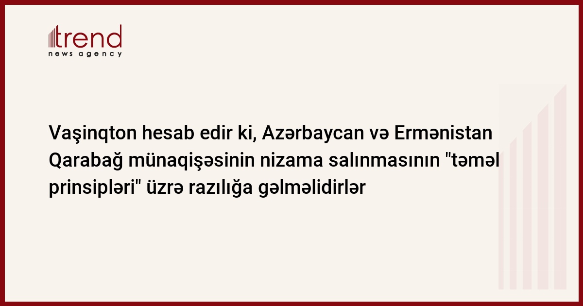 Azərbaycan, Bakı, 30 mart / Trend , K.Ramazanova / Vaşinqton hesab edir ki, Azərbaycan və Ermənistan Dağlıq Qarabağ münaqişəsinin nizamlanması ilə bağlı "təməl prinsipləri" üzrə ümumi razılığa gəlməlidir.