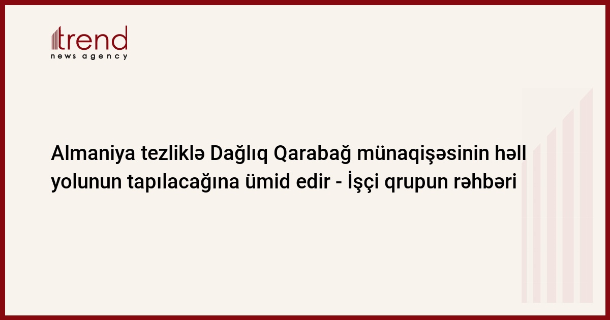 "Almaniya Cənubi Qafqazda olan "dondurulmuş münaqişələrin" ölkələrin ərazi bütövlüyü və sülh yolu ilə həllini dəstəkləyir. Almaniya və mənim təmsil etdiyim Sosial-Demokrat Partiyası Azərbaycanın ərazi bütövlüyünü tanıyır. Almaniya həmişə Azərbaycnın yanında olub və olacaq. ABŞ və Rusiya ilə müqayisdə Avropada Azərbaycanı daha çox dəstəkləyirlər", - deyə İşçi qrupun rəhbəri əlavə edib.