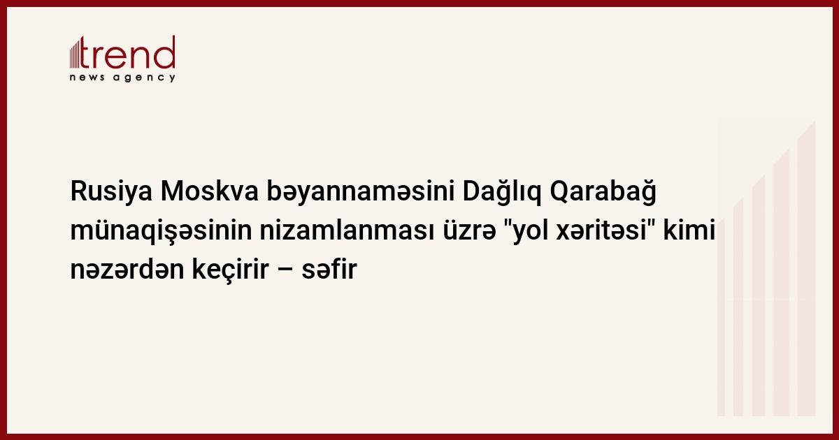 Azərbaycan, Bakı, 20 noyabr/ Trend , müxbir C.Babayeva/ Rusiya Azərbaycan, Ermənistan və RF liderlərinin Dağlıq Qarabağ münaqişəsi üzrə Moskva bəyannaməsini münaqişənin gələcək həlli üzər "yol xəritəsi" kimi nəzərdən keçirir, - Rusiyanın Azərbaycandakı səfiri Vasili İstratov cümə axşamı jurnalistlərə bildirib.