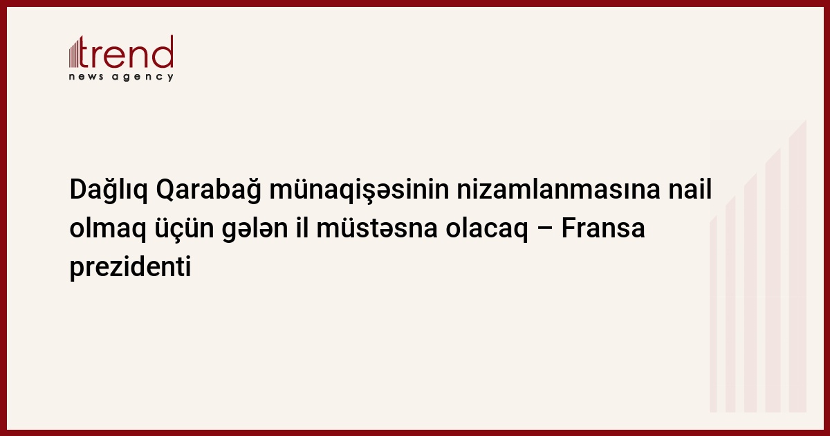 Fransa prezidenti Nikolya Sarkozi hesab edir ki, Dağlıq Qarabağ münaqişəsinin nizamlanmasına nail olmaq üçün gələn il müstəsna və məqsədəuyğun olacaq və bu imkandan istifadə etmək lazımdır, - "Azərtac" Dövlət İnformasiya Agentliyi məlumat verir.