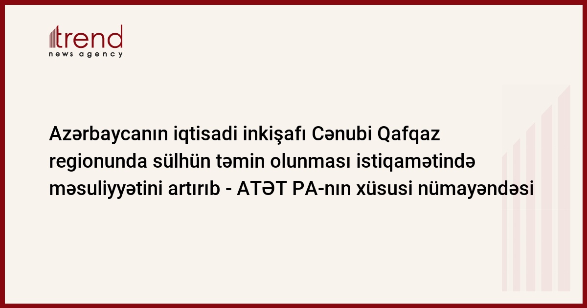 Azərbaycan, Bakı, 13 fevral / Trend , müxbir C.Babayeva/ ATƏT Parlament Assambleyasının Dağlıq Qarabağ üzrə xüsusi nümayəndəsi Qoran Lenmarker Azərbaycanın Cənubi Qafqaz regionunda sülhün təmin olunması istiqamətində məsuliyyətinin daha artıq olduğunu bildirib.