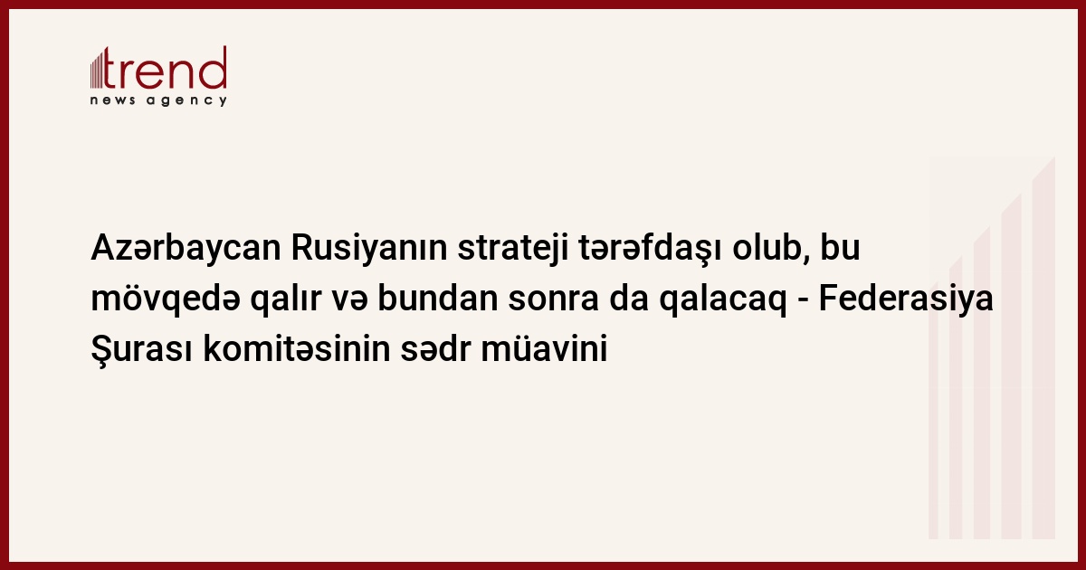 "Azərbaycan coğrafi, geosiyasi, mədəni və iqtisadi əməkdaşlığın qurulması və inkişaf etdirilməsi nöqteyi-nəzərindən Rusiya Federasiyasının strateji tərəfdaşı olub, bu mövqedə qalır və bundan sonra da qalacaq", - Federasiya Şurasının Beynəlxalq işlər üzrə komitəsinin sədr müavini Vasili Lixaçov hesab edir.