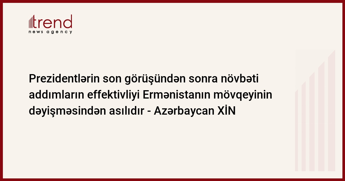 "Azərbaycan və Ermənistan prezidentlərin son görüşündən sonra növbəti addımların effektivliyi Yerevanın mövqeyinin dəyişməsindən asılıdır", - çərşənbə günü xarici işlər nazirinin müavini Araz Əzimov jurnalistlərə bildirib.