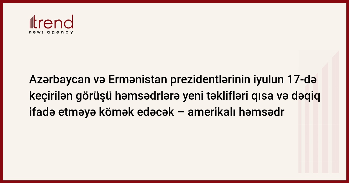Amerikalı həmsədr ümid edir ki, prezidentlər iyulun 18-də keçirilən üçtərəfli görüşdə irəliləyiş əldə edə biləcəklər.