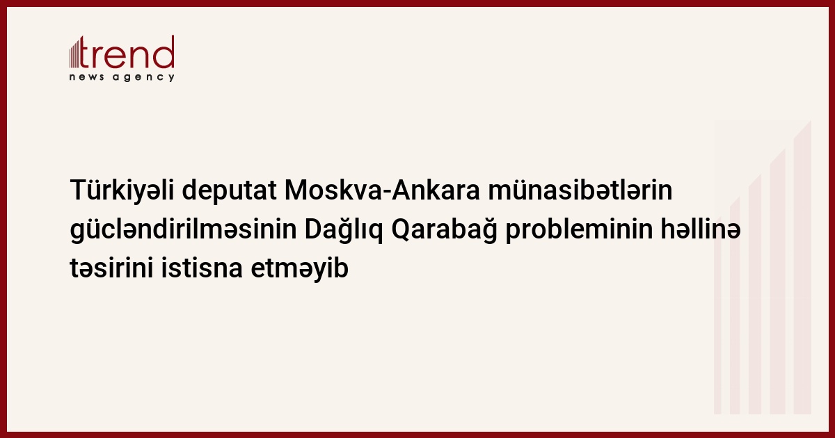 Türkiyəli deputat Moskva və Ankara arasında münasibətlərin gücləndirilməsinin Dağlıq Qarabağ probleminin həllinə təsirini istisna etməyib.