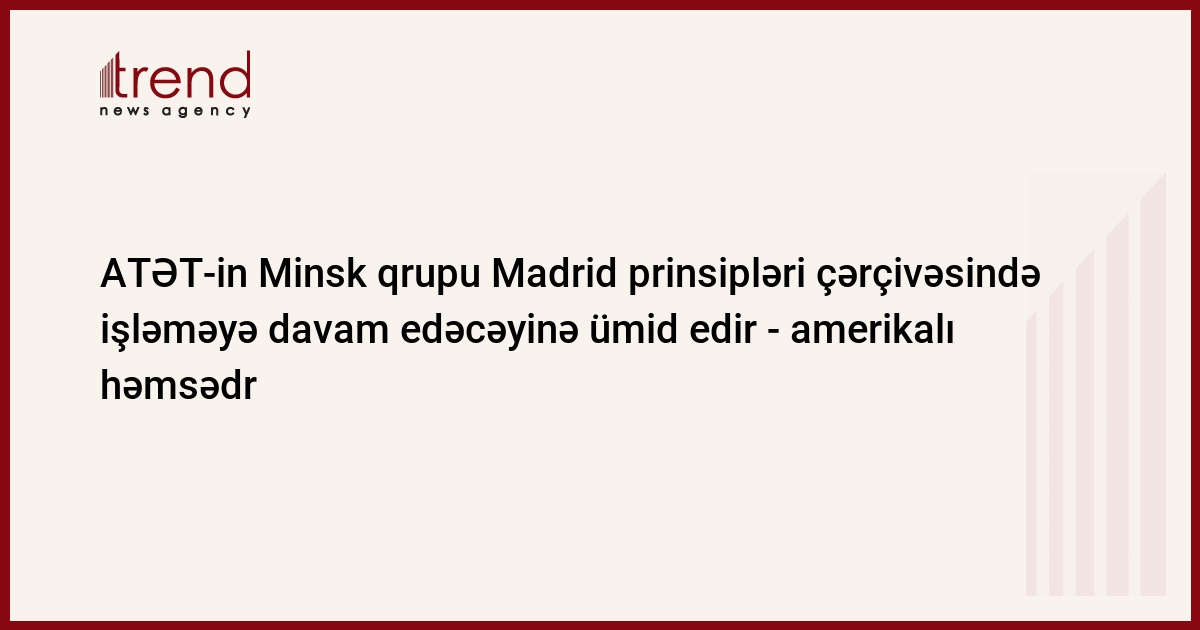 ATƏT-in Minsk qrupunun amerikalı həmsədri öz həmkarları ilə Madrid prinsipləri əsasında işləməyə davam edəcəyinə ümid edir. Bu barədə "Novosti Armeniya" saytı məlumat verir.