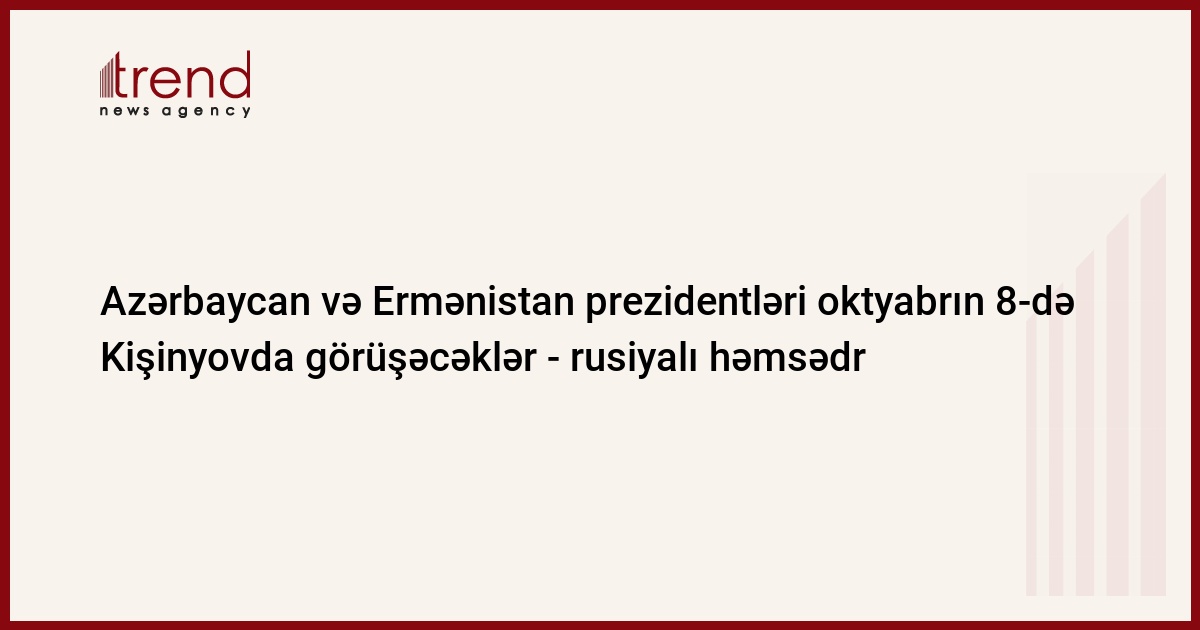 Azərbaycan və Ermənistan prezidentləri İlham Əliyev və Serj Sarkisyanın növbəti görüşü oktyabrın 8-də Kişnyovda keçiriləcək. Bu barədə çərşənbə axşamı Bakıda jurnalistlərə ATƏT-in Minsk Qrupunun rusiyalı həmsədri Yuri Merzlyakov bildirib.