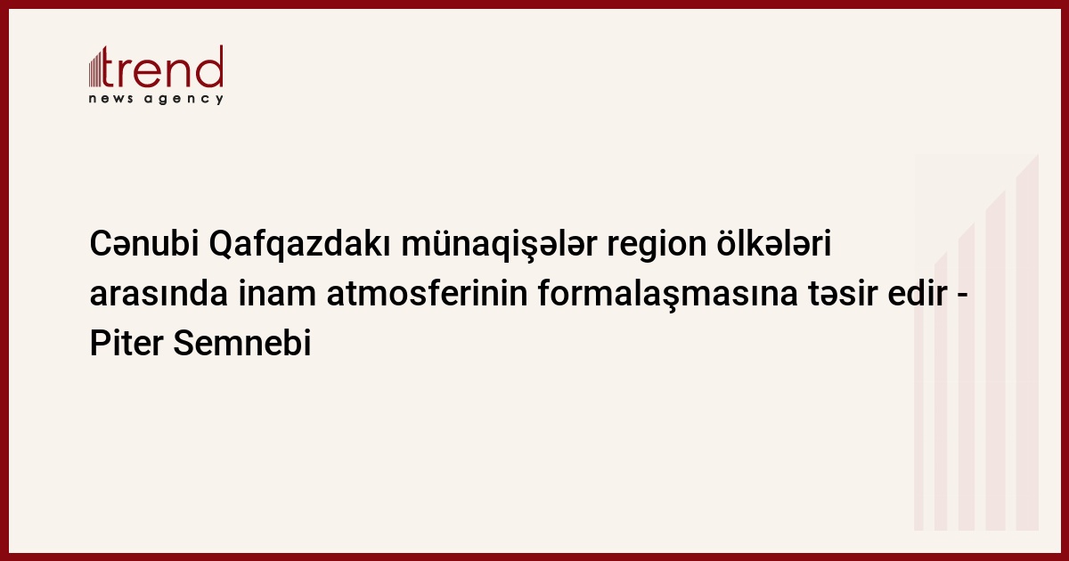 Cənubi Qafqazdakı münaqişələr region ölkələri arasında inam atmosferinin formalaşmasına təsir edir. Bu barədə "Azadlıq" radiosuna müsahibəsində Avropa ittifaqının Cənubi Qafqaz üzrə xüsusi nümayəndəsi Piter Semnebi bildirib.