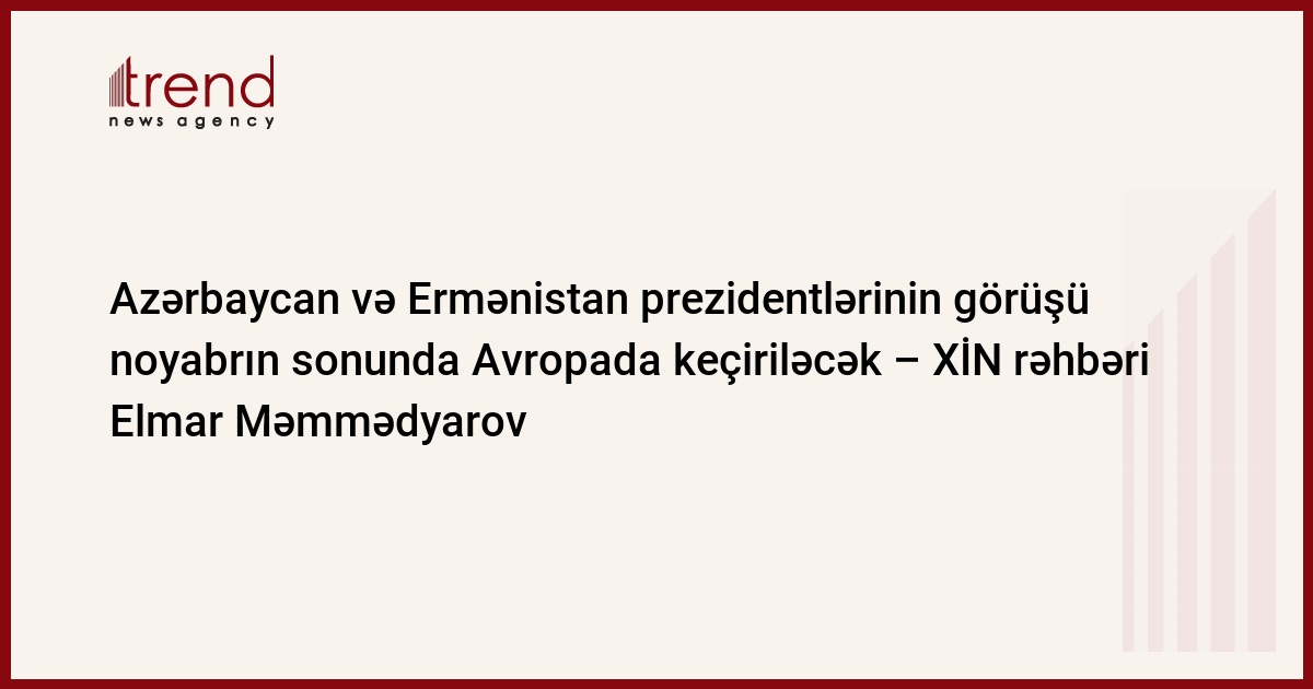 Azərbaycan və Ermənistan prezidentlərinin görüşü noyabrın sonunda Avropada keçiriləcək, bu barədə jurnalistlərə Azərbaycanın xarici işlər naziri Elmar Məmmədyarov bildirib.