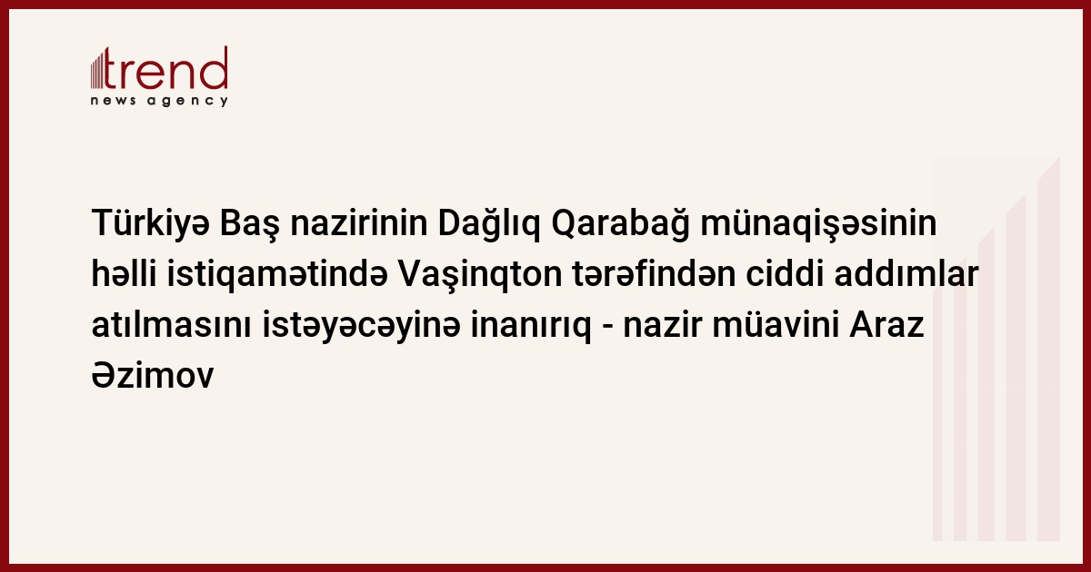 Azərbaycan ilə Türkiyə tərəfdaşlığı nəticəsində əldə edilmiş nailiyyətlərin Türkiyənin Baş naziri tərəfindən ABŞ-da dəqiq formada çatdırılmasına ümid edirik, Trend -un məlumatına görə, bunu bazar ertəsi jurnalistlərə Azərbaycan xarici işlər nazirinin müavini Araz Əzimov bildirib.