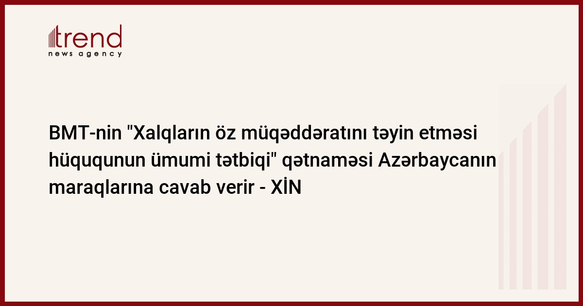 Rəsmi Bakı hesab edir ki, BMT Baş Assambleyasının "Xalqların öz müqəddəratını təyin etməsi hüququnun ümumi tətbiqi" qətnaməsi Azərbaycanın maraqlarına cavab verir.