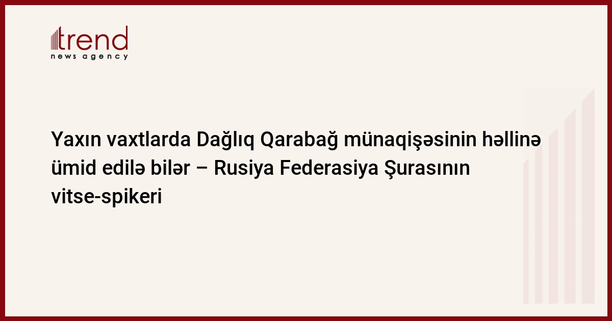 Rusiya Dağlıq Qarabağ münaqişəsinin həlli üçün çalışır və düşünürəm ki, yaxın gələcəkdə daha yaxşı nəticələrə ümid etmək olar. Bu barədə çərşənbə axşamı Bakıda Rusiya Federasiya Şurasının vitse-spikeri Svetlana Orlova jurnalistlərə deyib.