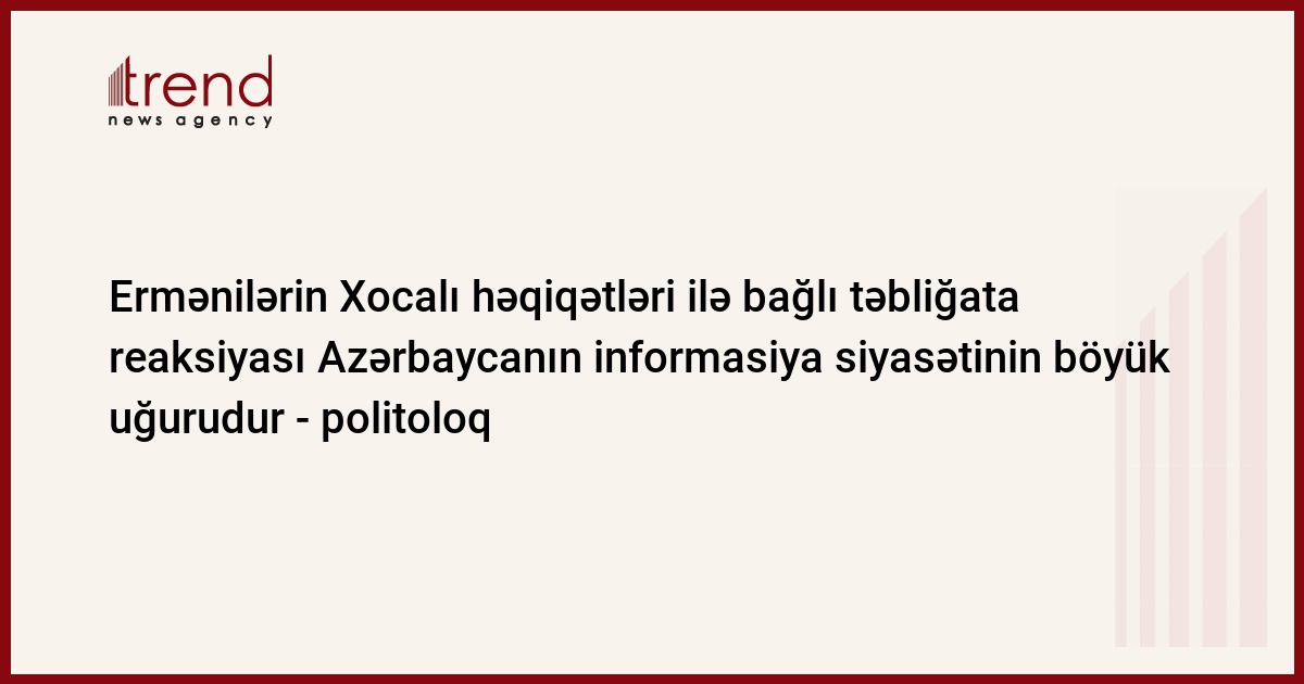 Ermənilərin reaksiyası Azərbaycanın informasiya siyasətinin böyük uğuruna sübutdur. Bunu ermənilərin Xocalı hadisələrinin saxtalaşdırıldığı internet saytını təqdim etmələrini şərh edən politoloq, peşəkar jurnalist Rasim Ağayev Trend -a deyib.